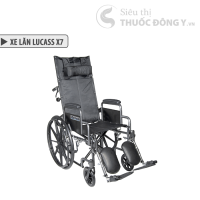 - Xe lăn đa năng Lucass X7 có 2 tay đẩy phía sau, có thể ngả ghế nằm 60 độ