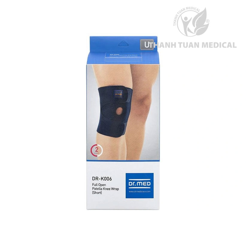 Bước 1: Vòng Bao đeo đầu gối Dr. Med DR-K006 quanh đầu gối, phần miếng tròn nằm ở giữa đầu gối.