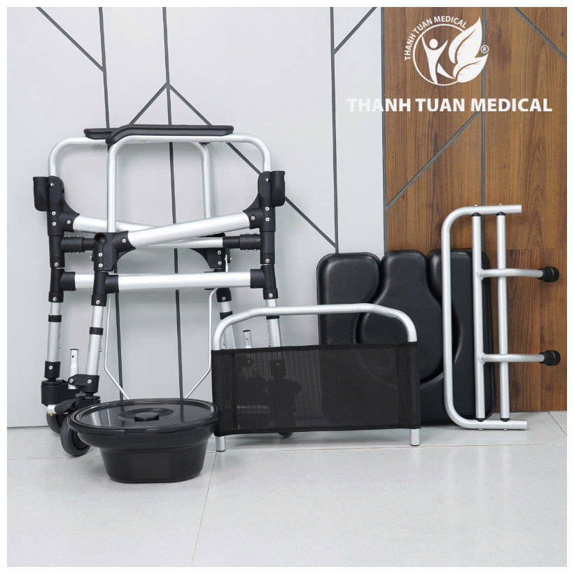 - Tích hợp bô vệ sinh tròn có tay cầm và nắp đậy, bô có thể tháo rời, giúp thuận tiện cho người dùng và người chăm sóc, dễ dàng đổ và vệ sinh.