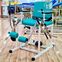 - Đây là thiết bị tập phục hồi chức năng tốt nhất để tập mạnh nhóm cơ vùng đùi trước và sau (cơ tứ đầu và cơ tam đầu đùi) của chi dưới. Ghế có thể điều chỉnh được lực kháng nặng – nhẹ tùy theo sức cơ và sự tiến triển của người bệnh bằng cách tăng hoặc giảm trọng lượng tạ cho phù hợp.