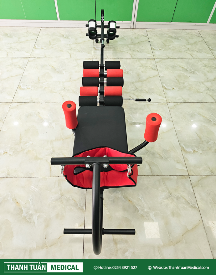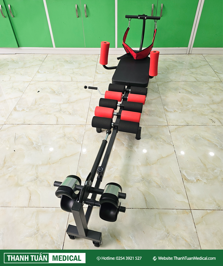 Ngoài chức năng kéo giãn, giường còn tích hợp hỗ trợ các bài tập như squat, gập bụng,... giúp đốt cháy năng lượng, định hình vóc dáng.