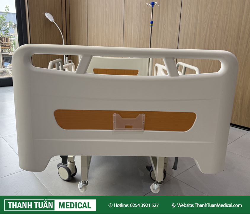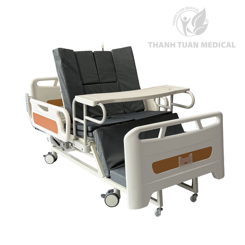 Hai bên thà nh giưá»ng cá»§a giưá»ng y tế Ä‘iá»u khiển Ä‘iện được nâng hạ bằng pÃt tông. 02 lan can bằng thép ống sÆ¡n tÄ©nh Ä‘iện để đặt bà n ăn