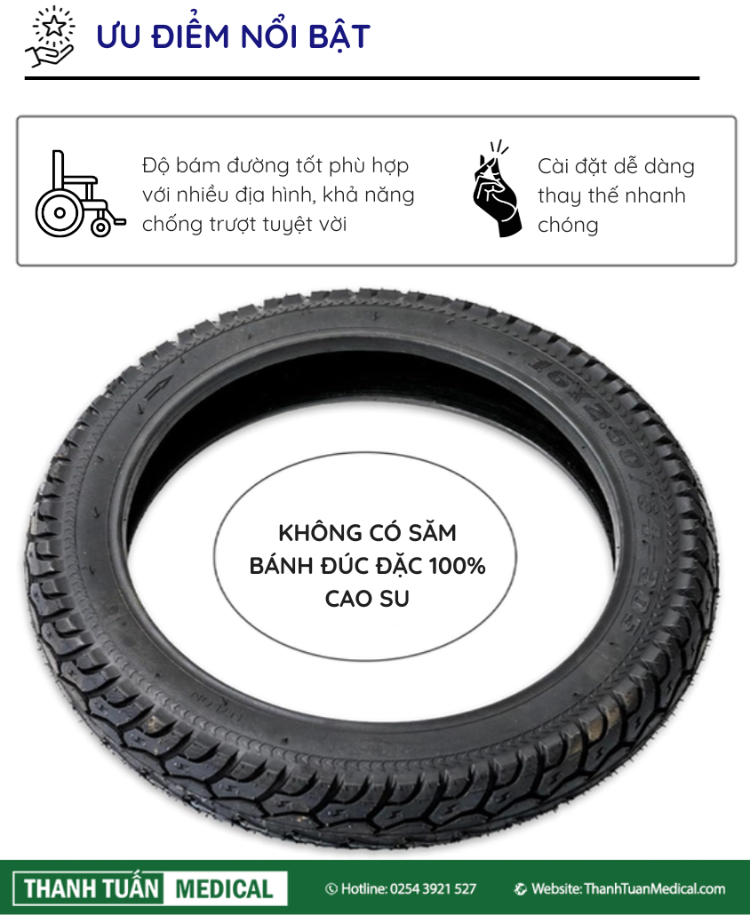 - Tăng cường an toàn: Lốp mới với độ bám đường tốt, hoa văn (talon) còn nguyên sẽ giảm thiểu tối đa nguy cơ trơn trượt, đặc biệt khi di chuyển dưới trời mưa, trên nền đất ẩm ướt hoặc khi leo dốc/xuống dốc. Điều này cực kỳ quan trọng đối với xe lăn điện Lucass vì tốc độ và quãng đường di chuyển của xe thường lớn hơn xe lăn tay.
