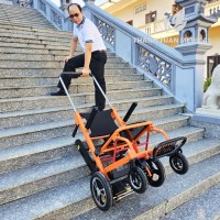 - Thuận tiện cho người cao tuổi lên xuống xe lăn. Cả hai tay vịn bên của xe lăn leo cầu thang có thể nâng lên 90° để lên xuống dễ dàng.