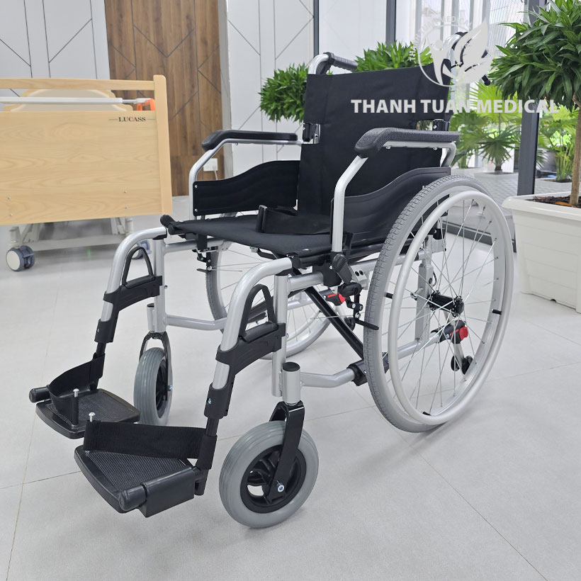 • Chứng nhận chất lượng quốc tế: Lucass X-203 đạt các tiêu chuẩn như FDA, TUV, ISO 9001, ISO 13485:2003, khẳng định chất lượng và độ an toàn của sản phẩm. Xe có hai vòng lăn tay giúp người dùng có thể tự di chuyển, đồng thời có tay đẩy phía sau để hỗ trợ khi cần.