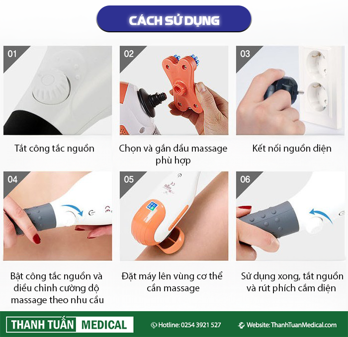 - Chọn và gắn đầu massage phù hợp với từng bộ phận cơ thể.