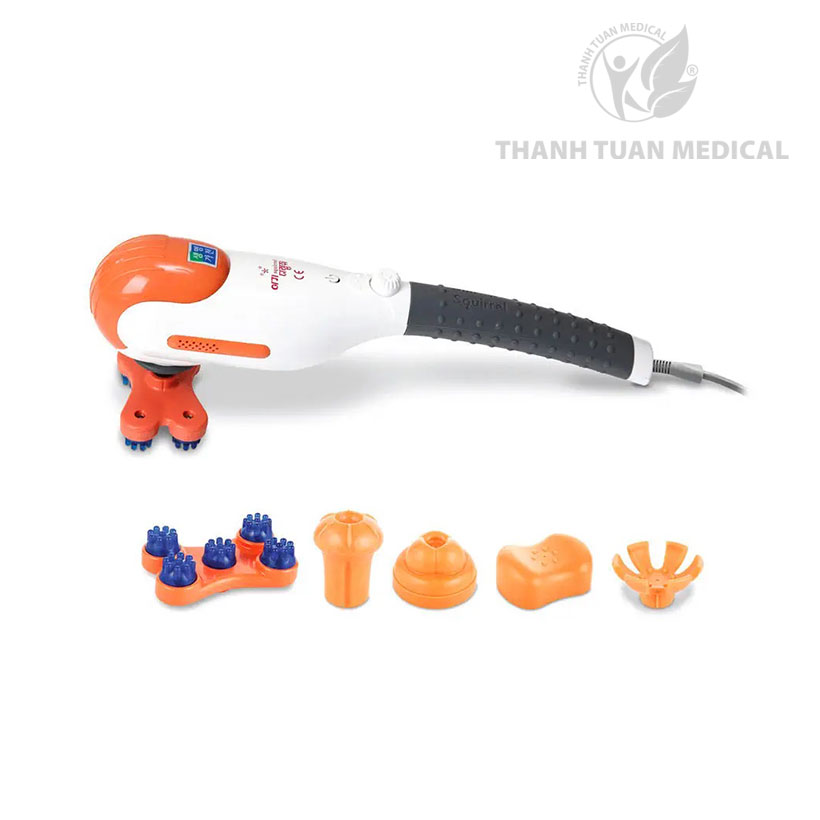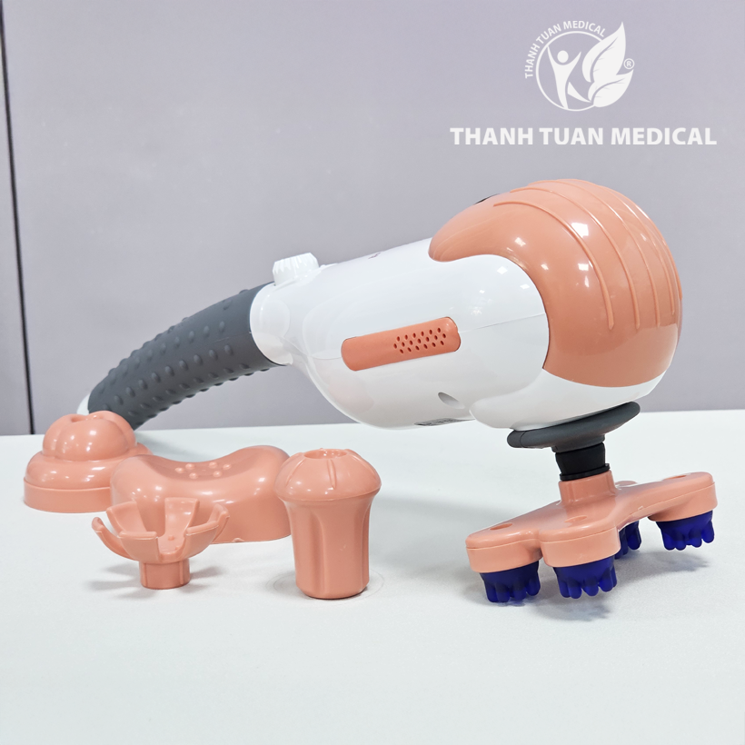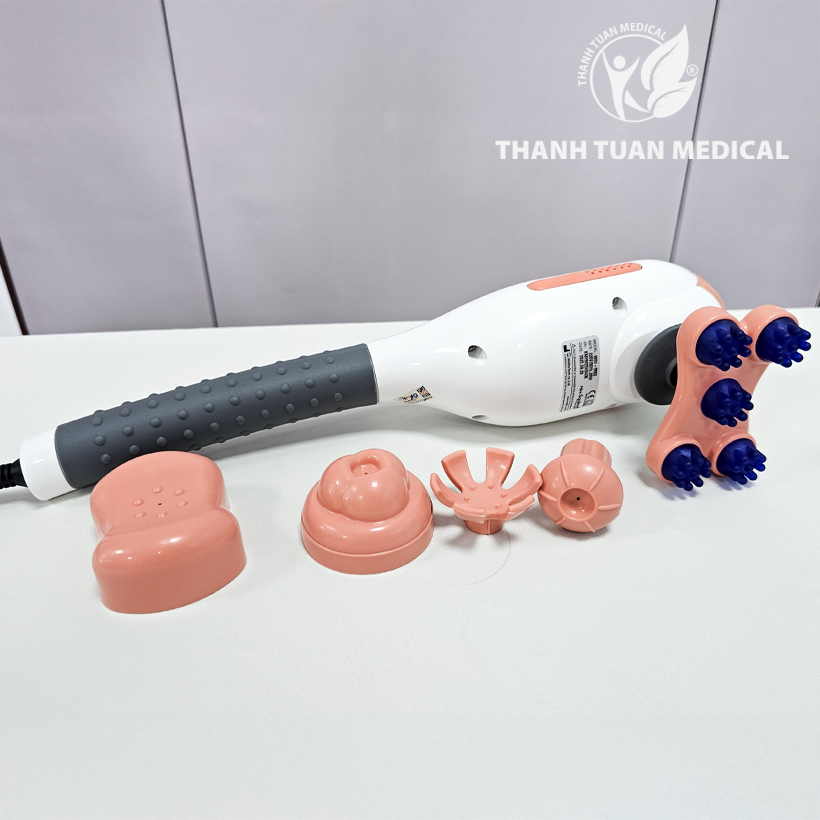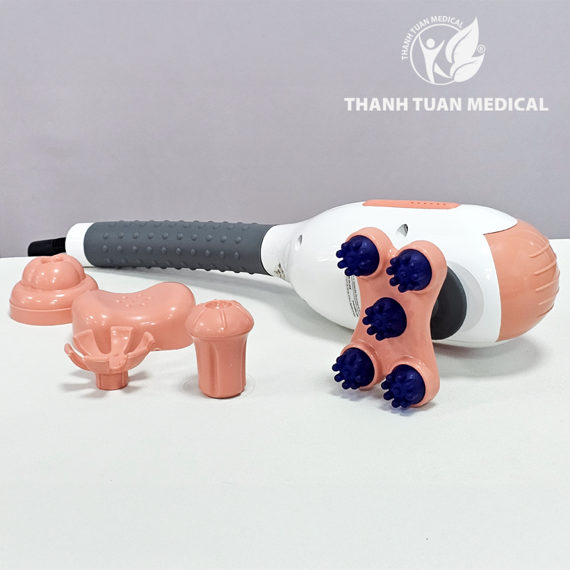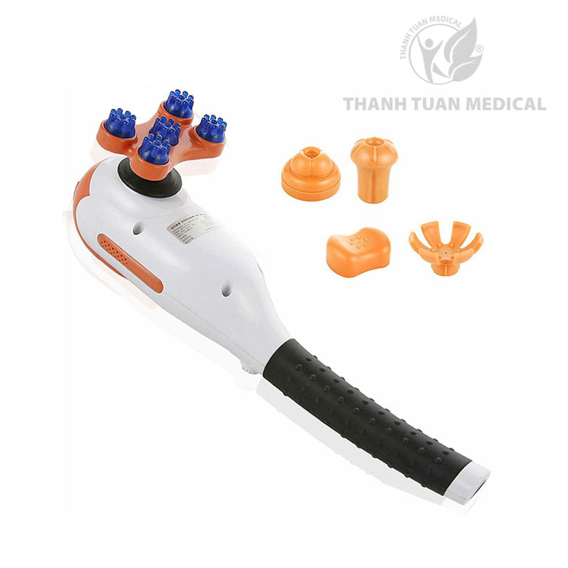 - Trang bị 5 đầu massage rời, dễ dàng lắp ráp, thiết kế riêng biệt phù hợp từng vùng trên cơ thể như vai gáy, cổ tay, chân, lưng…