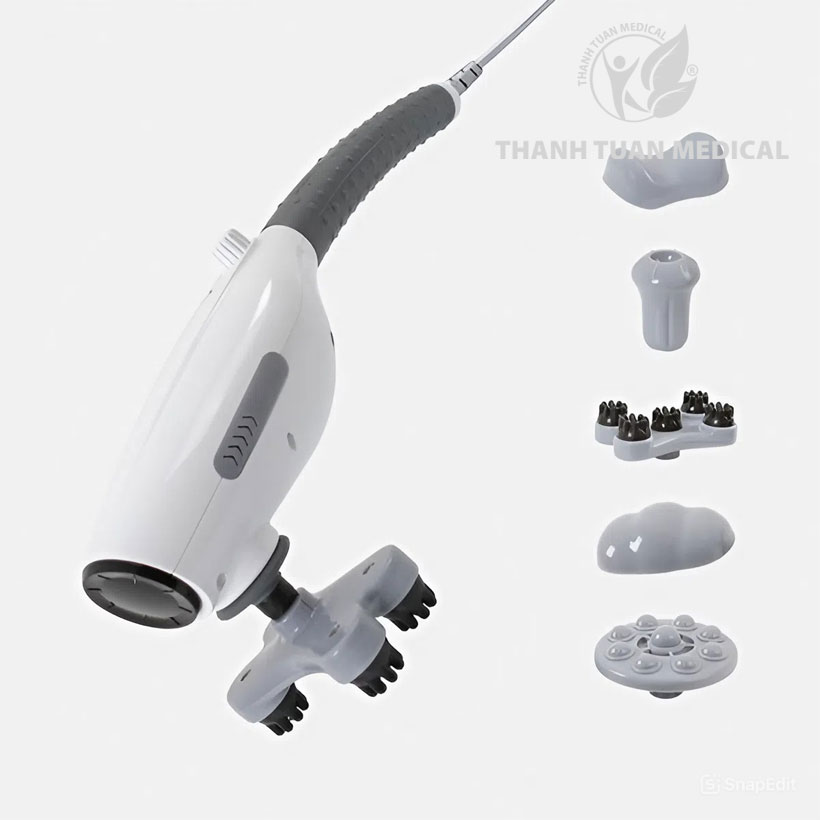 - 5 đầu massage thay thế, mỗi loại phục vụ một mục đích khác nhau như làm dịu cơ bắp, kích thích tuần hoàn, hoặc thư giãn sâu.