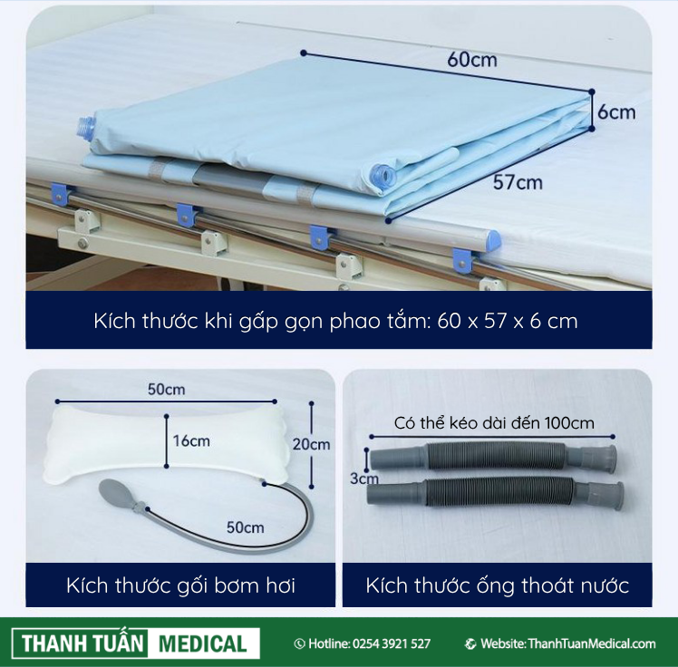 Phao tắm nà y được thiết kế không cần bÆ¡m hÆ¡i, phao tắm ôm sát bá» mặt giưá»ng, giảm bá»›t gánh nặng cho ngưá»i chăm sóc và loại bá» nhu cầu phải bế đỡ.
