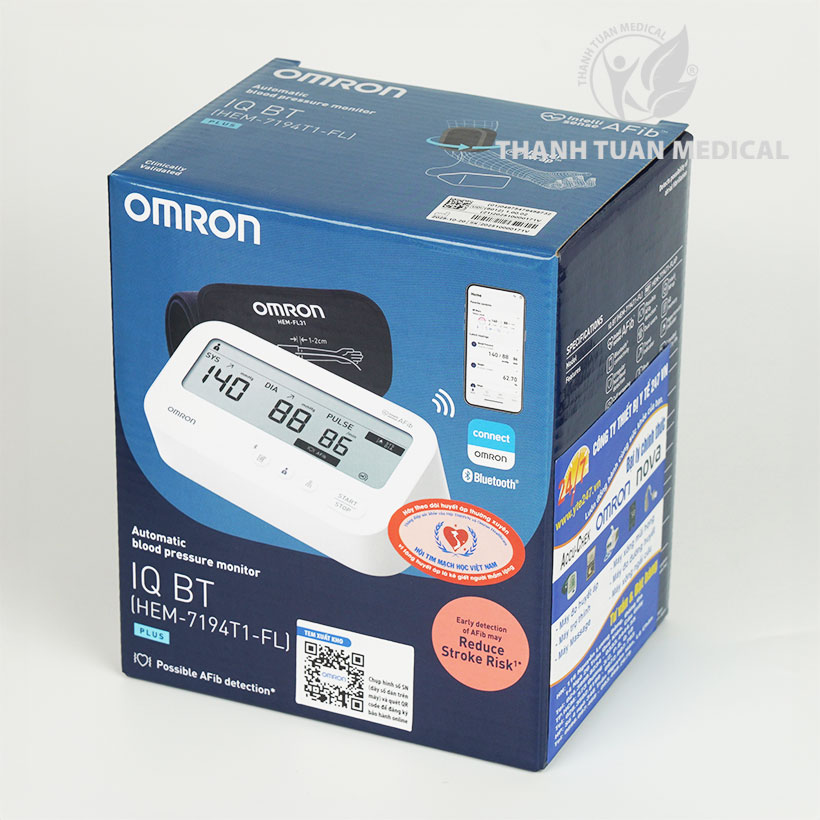 Chăm sóc sức khá»e tim mạch cá»§a bạn thông minh vá»›i HEM-7194T1-FLAP để phát hiện rung nhÄ© (AFib) chỉ vá»›i má»™t phép Ä‘o huyết áp duy nhất. Vòng bÃt IntelliWrapâ„¢ đảm bảo độ vừa vặn tùy chỉnh và kết quả Ä‘á»c chÃnh xác má»i lúc. Äồng bá»™ hóa liá»n mạch vá»›i OMRON Connect để theo dõi và chia sẻ kết quả cá»§a bạn má»™t cách dá»… dà ng. Chức năng ngưá»i dùng kép cho phép hai ngưá»i dùng lưu trữ và truyá»n dữ liệu cá»§a hỠđến Ä‘iện thoại thông minh cá»§a há» - lý tưởng để sá» dụng chung tại nhà .