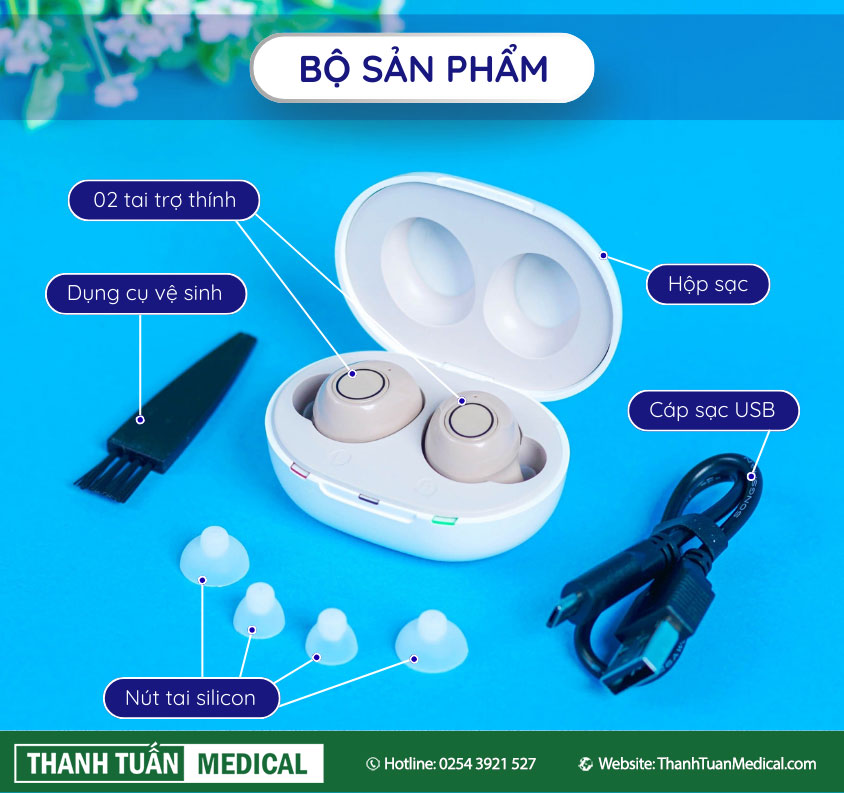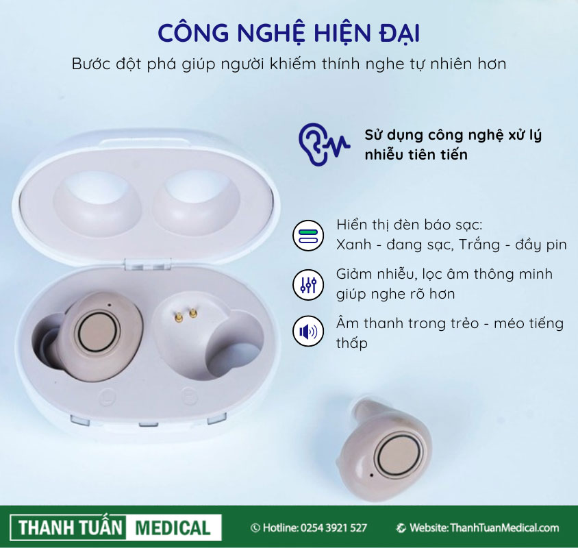 - Dạng máy: Äeo trong tai (ITE) – pin sạc