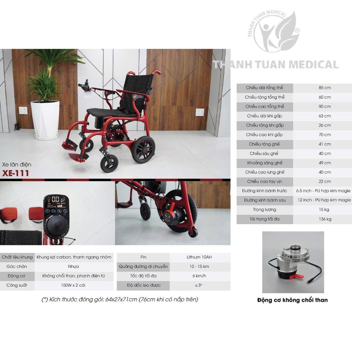 Xe lăn điện Lucass XE-111 là giải pháp di chuyển hiện đại, kết hợp giữa thiết kế gọn nhẹ và công nghệ vận hành thông minh. Với khung sợi carbon và thang ngang nhôm bền chắc, động cơ không chổi than êm ái cùng pin Lithium dung lượng cao, xe mang đến trải nghiệm thoải mái, an toàn và tiện lợi cho người dùng. Đặc biệt, khả năng gập gọn nhanh chóng giúp XE-111 trở thành người bạn đồng hành lý tưởng trong mọi hành trình, từ trong nhà đến ngoài trời.
